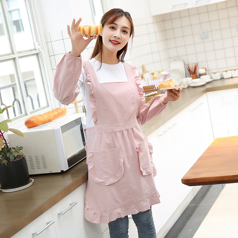 Cotton apron female work waterproof and oil-proof cotton cute Japanese fashion home kitchen cotton and linen breathable princess skirt