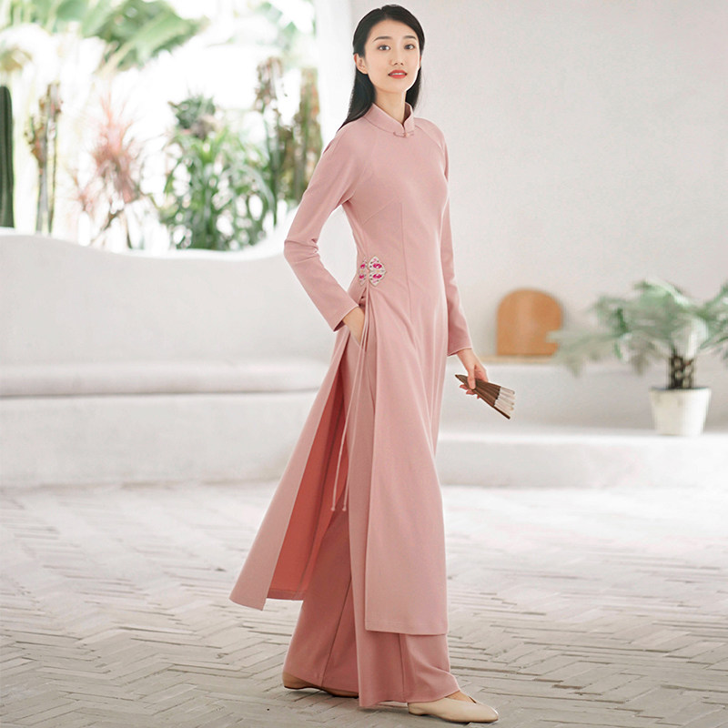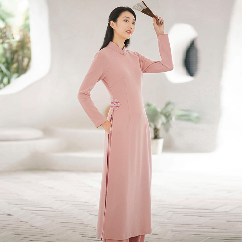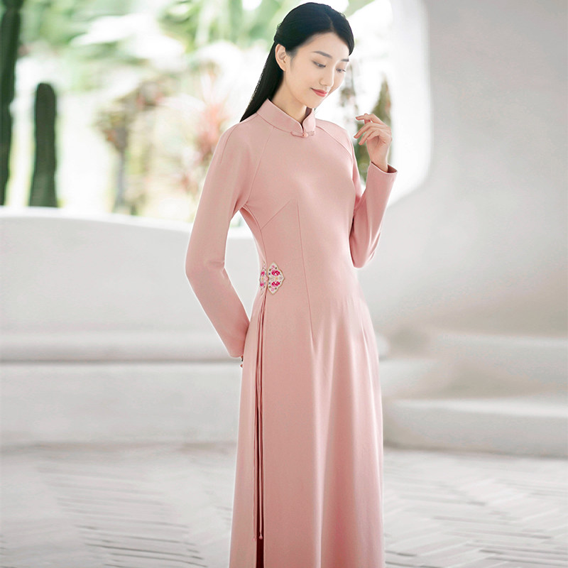 The early cicada autumn and winter female Chinese wind Chinese retro long-coated coat Audea tea dress