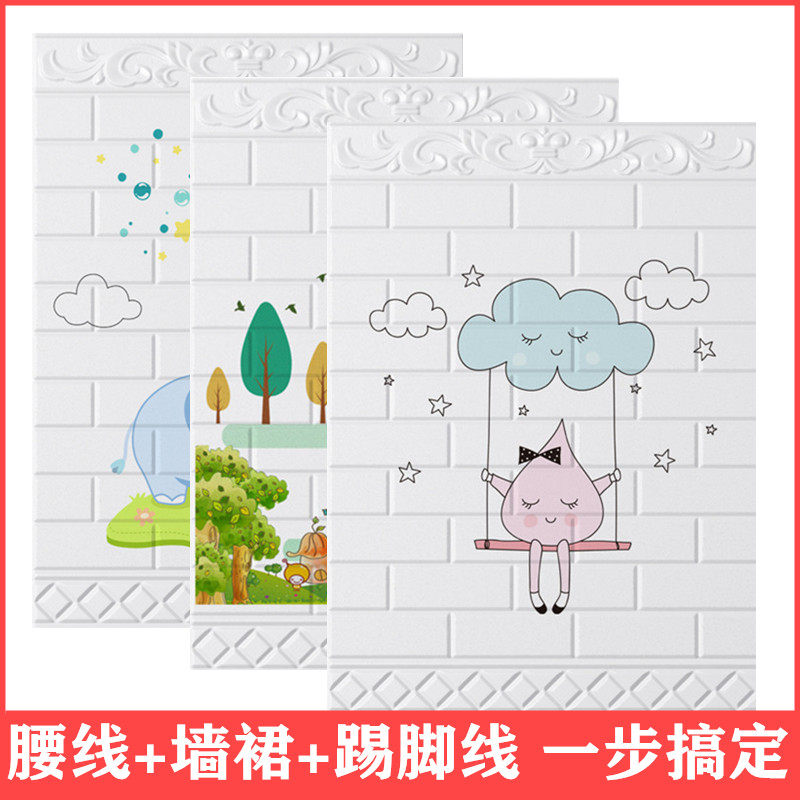 Wallpaper self-adhesive 3d stereo wall sticker Bedroom warm wallpaper Kindergarten classroom aisle children waterproof anti-collision wall skirt