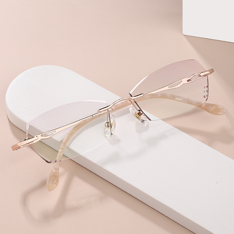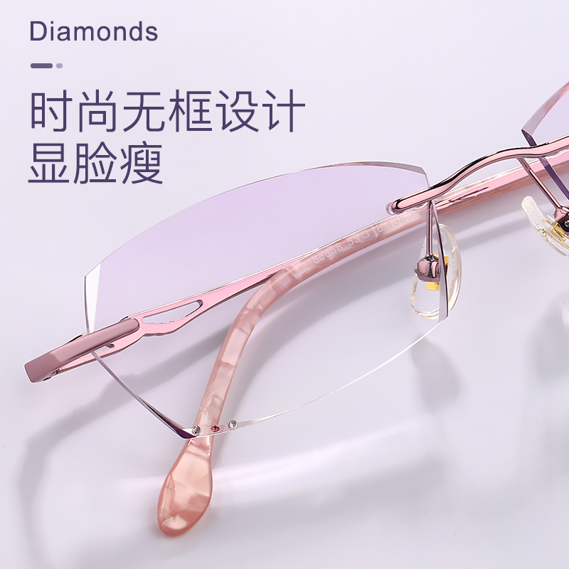 No box Myopia Glasses Female Degree can fit small frame pure titanium cut edge inlaid drill ultra light fashion retro round face Han version wave