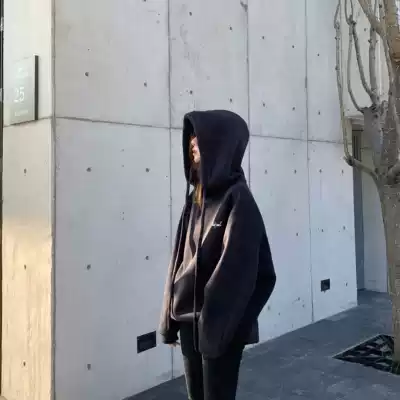 LIL CHER black hooded sweatshirt women loose Korean version 2021 new spring and autumn Joker tide ins coat top