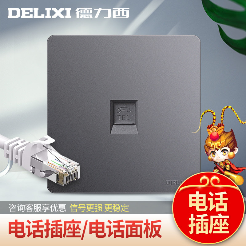 Delixi Model 86 telephone socket panel one wall telephone socket Home telephone cord socket 821 gray