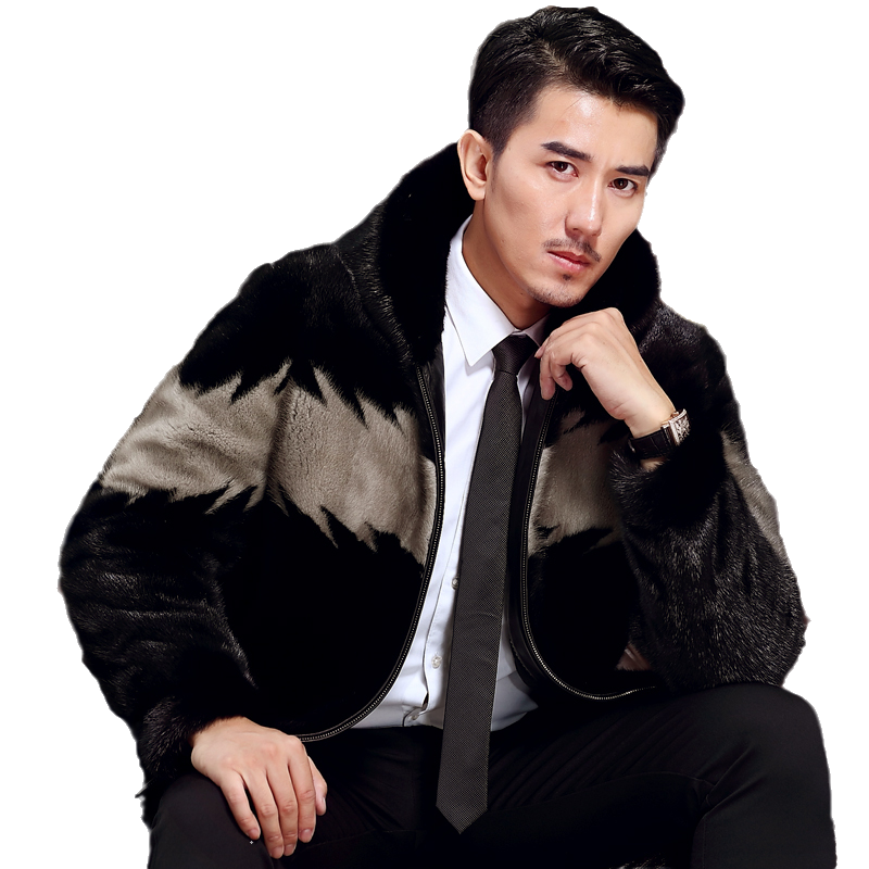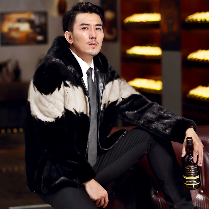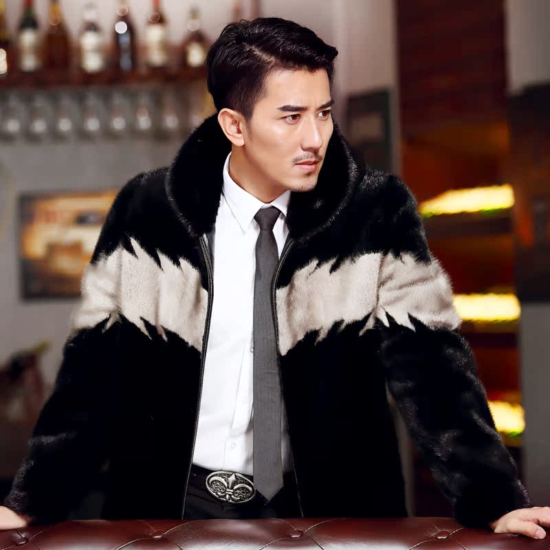 New Haining Mink Fur Coat Men's Fur Mink Hair Whole Mink Short Hooded Haining Fur Coat Thickened Coat