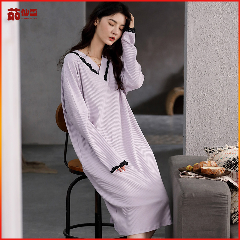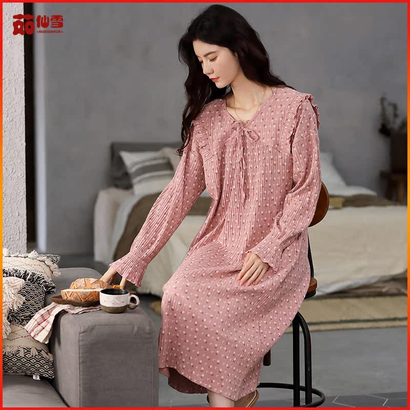 Ru Xianxue night dress women's cotton long-sleeved autumn home dress dress medium and long version plus size loose women's pajamas