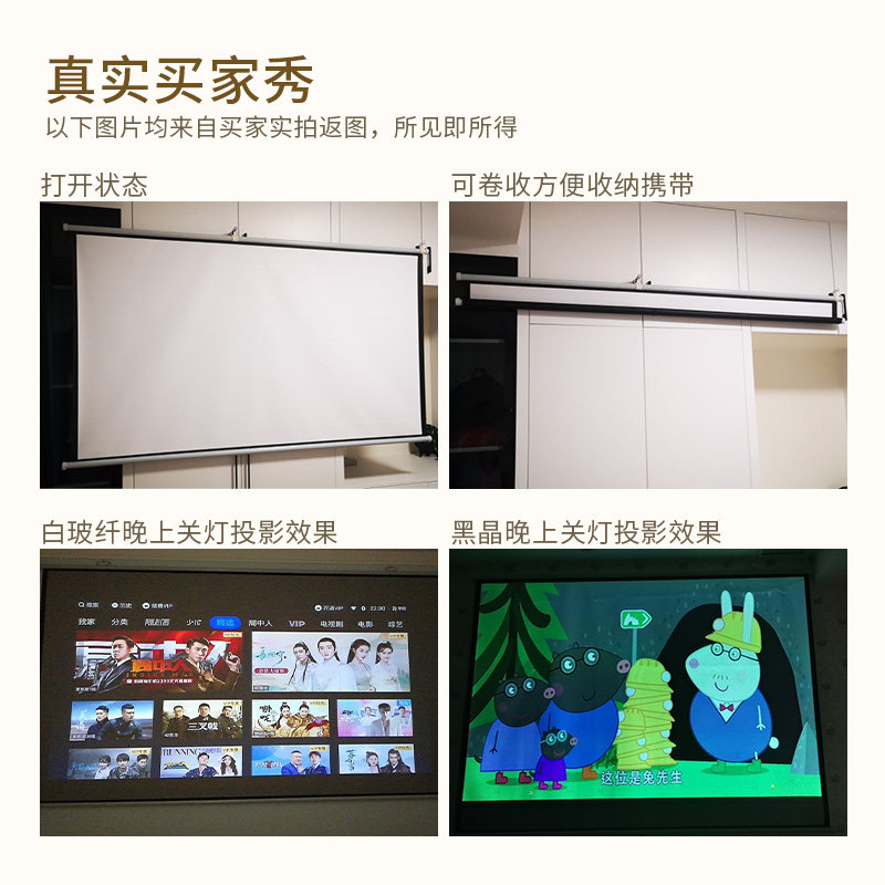 Wall-mounted simple projection screen Home sticker wall hook free punching 84 inch 100 inch 120 inch small mobile portable projection cloth manual curtain bedroom public hd projector curtain living room