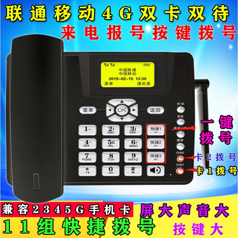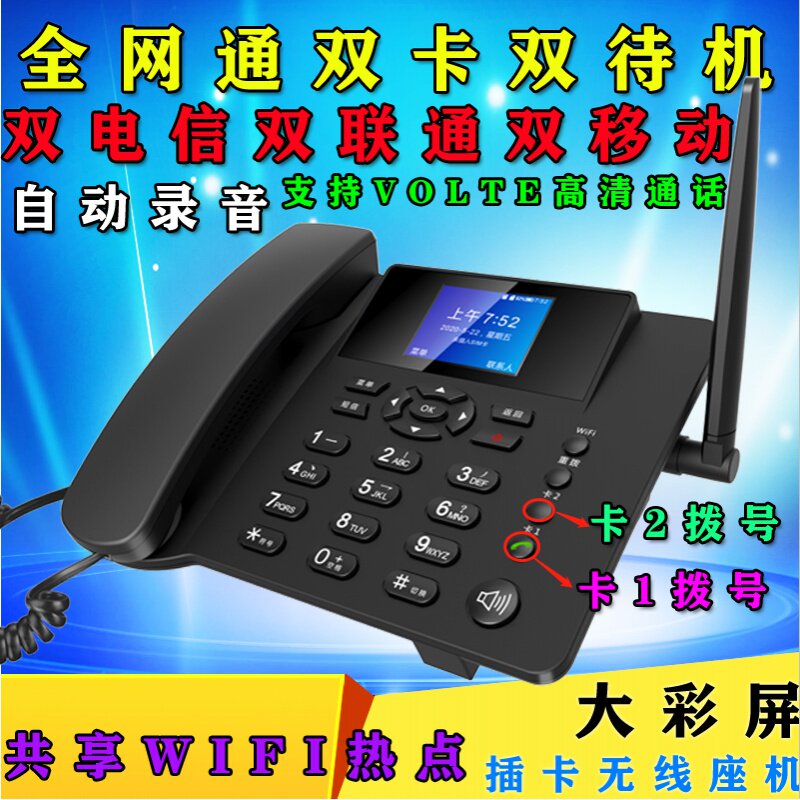 Full Netcom 4G dual card dual standby mobile Unicom Telecom wireless landline card automatic recording telephone fixed