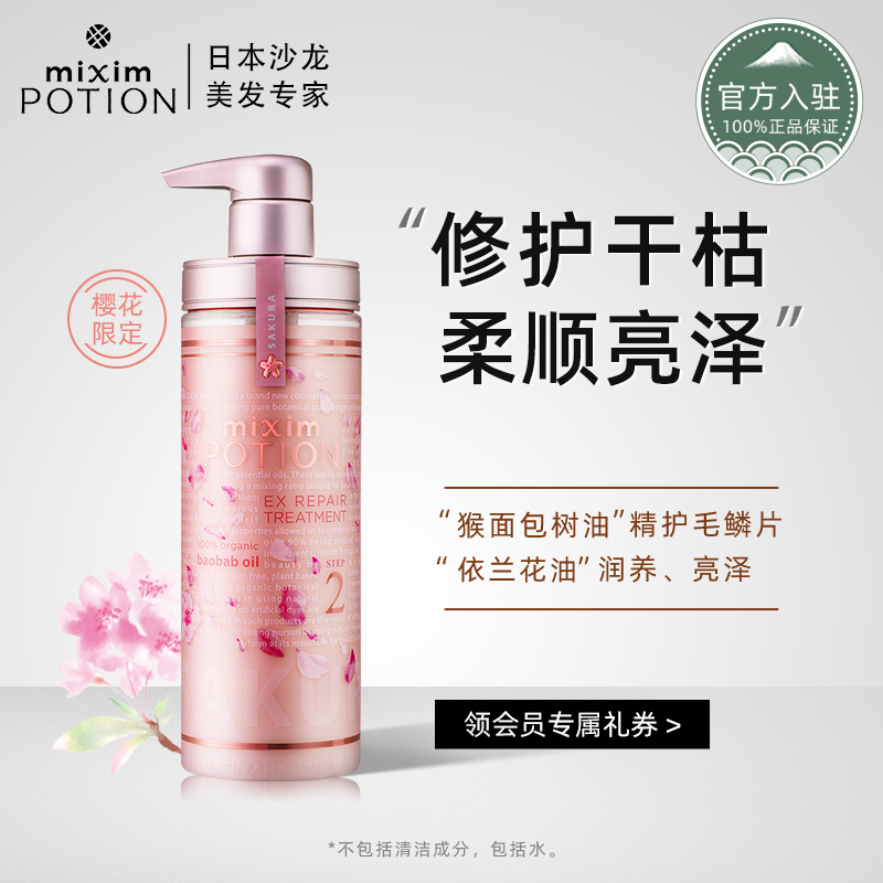 Japanese mixim potion seeks cherry blossom conditioner to repair dryness and improve frizz and lasting fragrance flagship store