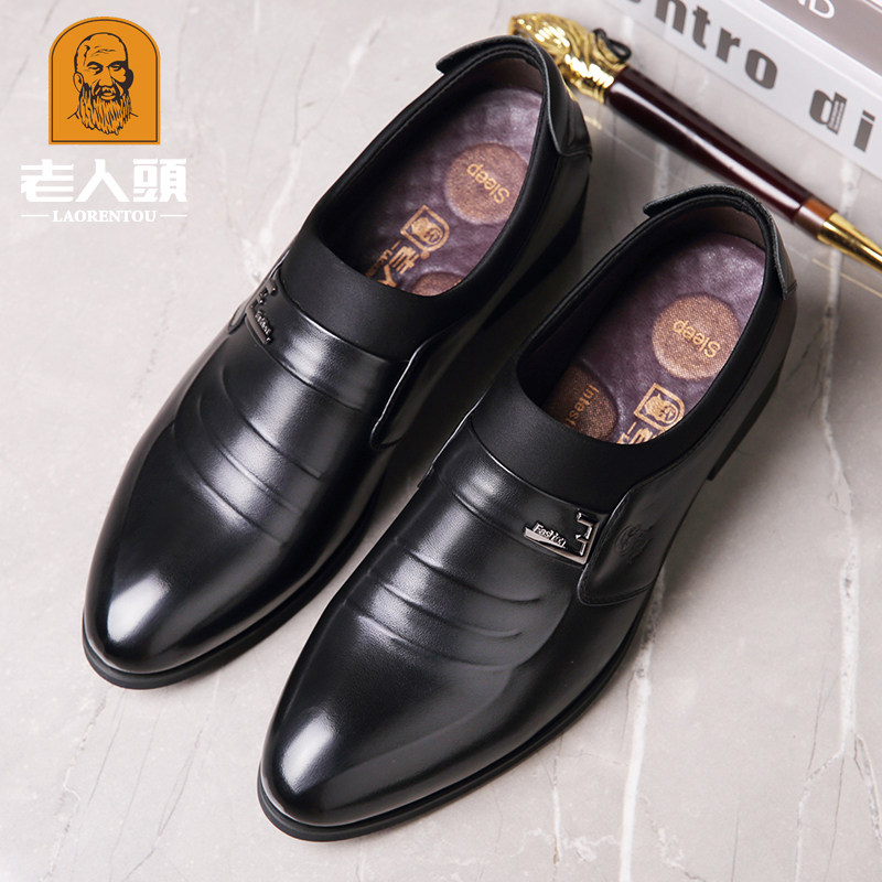Old man head formal leather shoes men's new men's shoes business casual men's black single shoes British shoes men's real cowhide