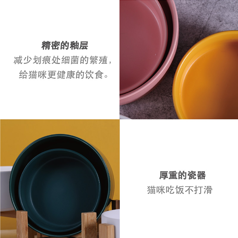 (persimmon bacteria) good looking ceramic bowls bamboo and wood frame non-slip anti-side turning large cat bowls dog bowls water basin rice bowls