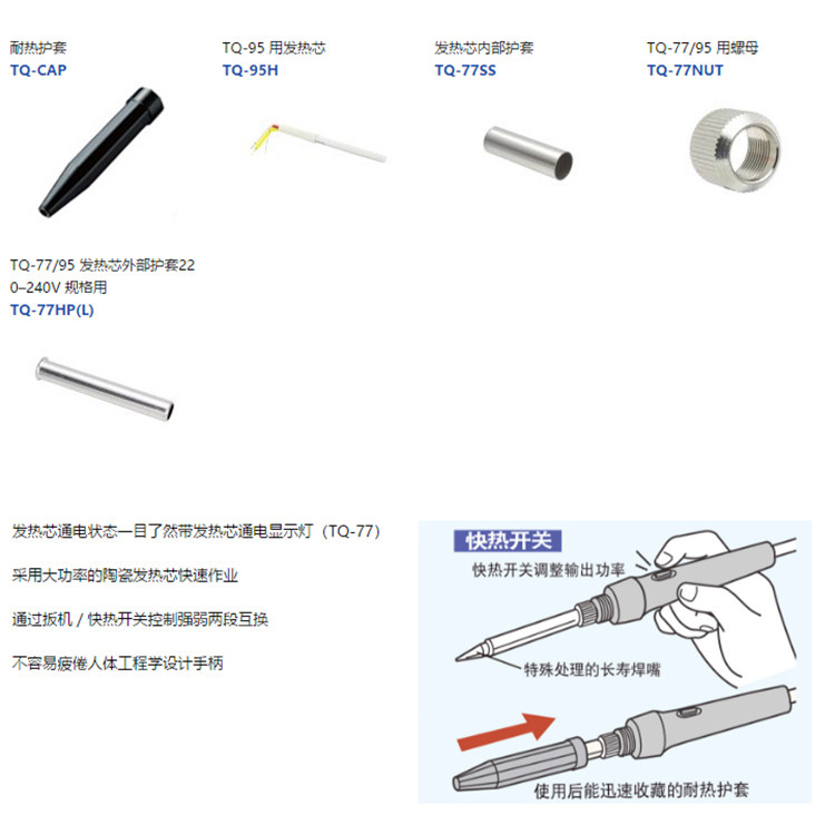 Japan Goot Original Dress TQ-95 Thermoregulation Iron Protection Sleeve Nut Heating Core Accessories Round Pointed Horseshoe Mouth