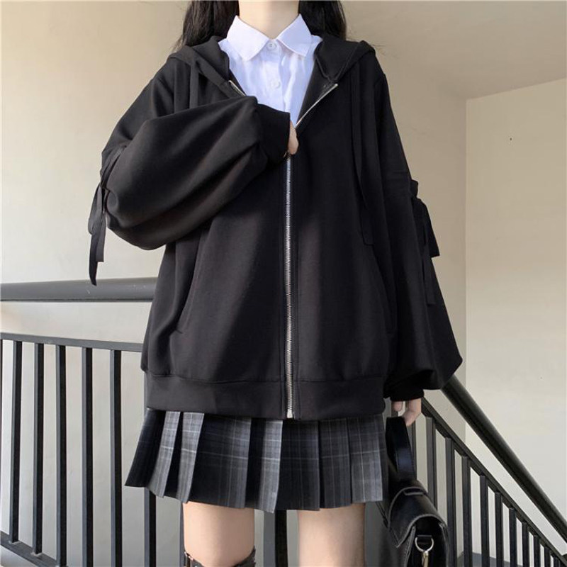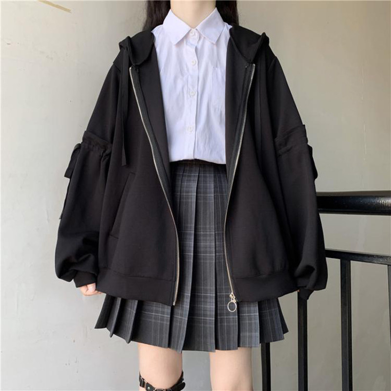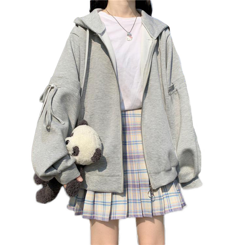 Grey regular style (early autumn wear, Korean version, loose, casual, sports, all-match, college style, American retro girls, girls, girls, big children) Black regular style (early autumn wear today