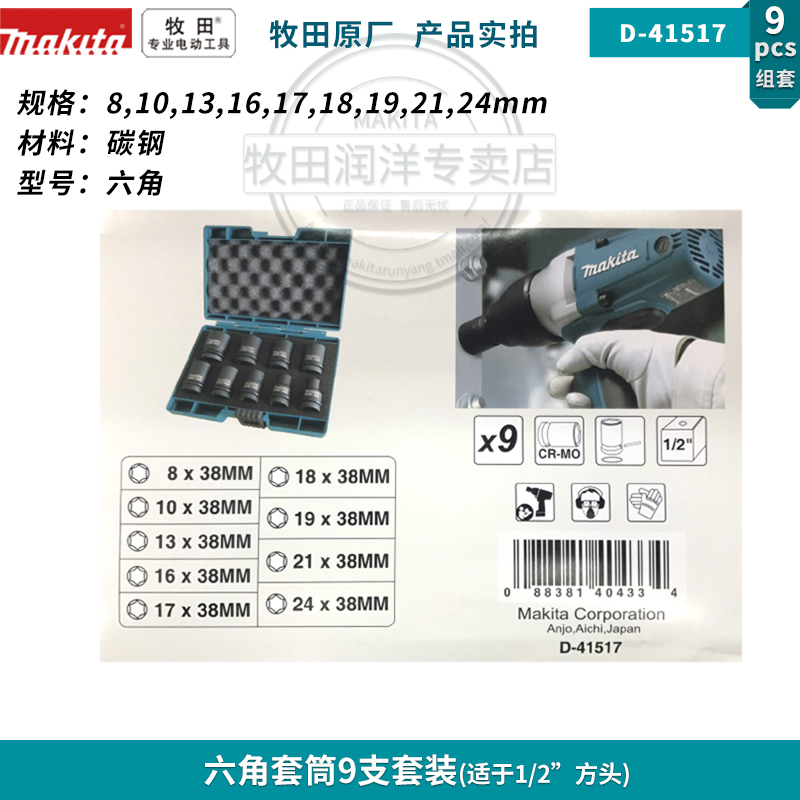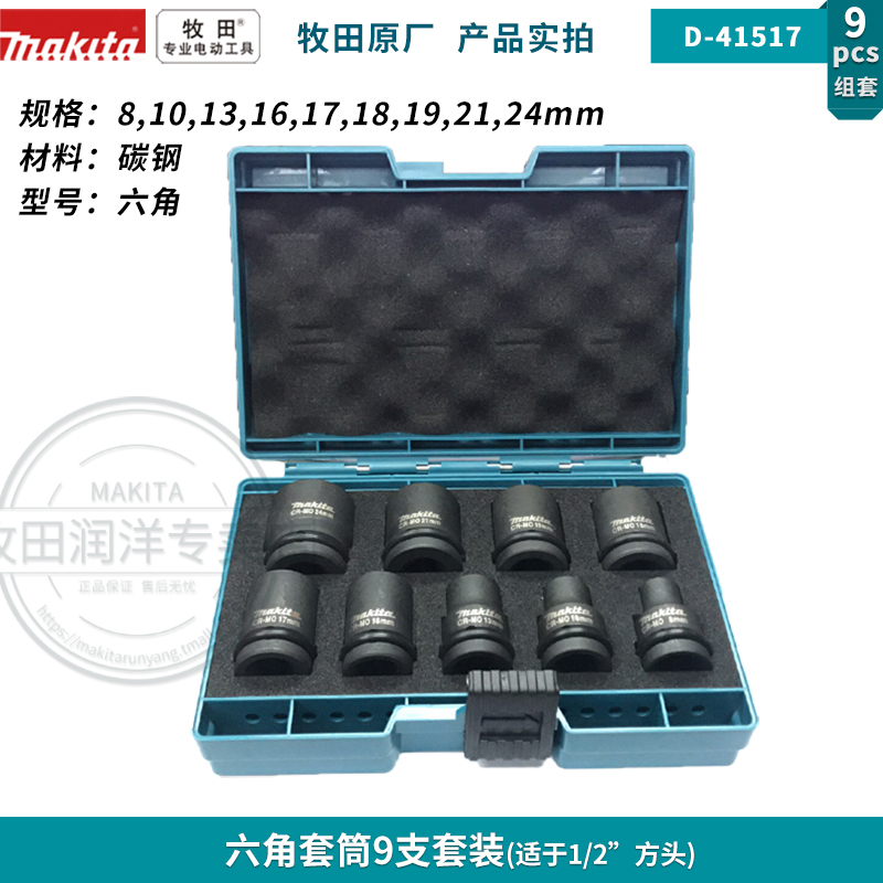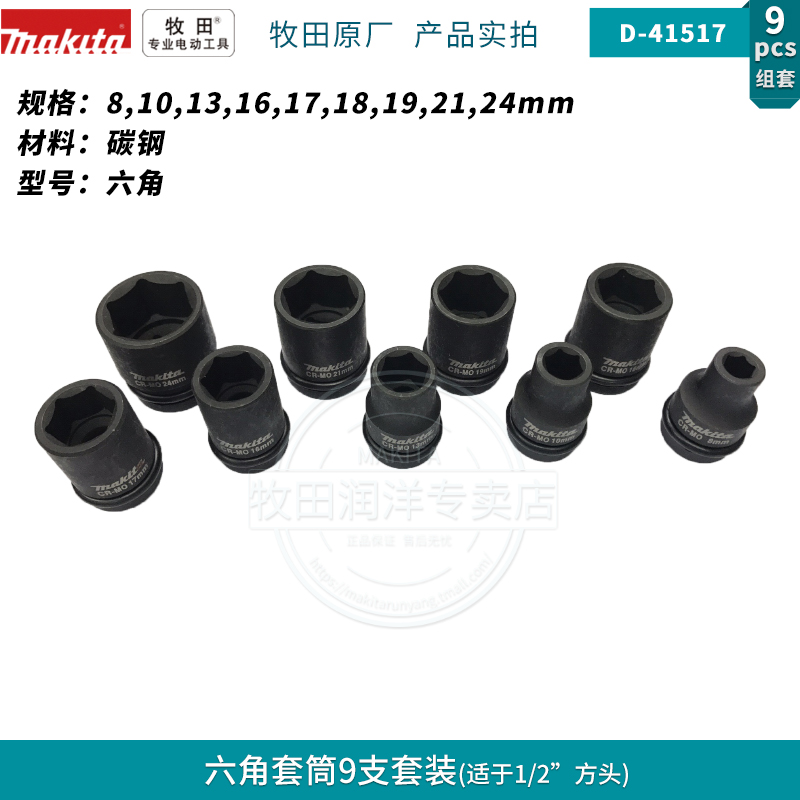 Hexagonal socket 1 2 square head 9 sticks impact wrench D-41517 carbon steel socket 8-24mm