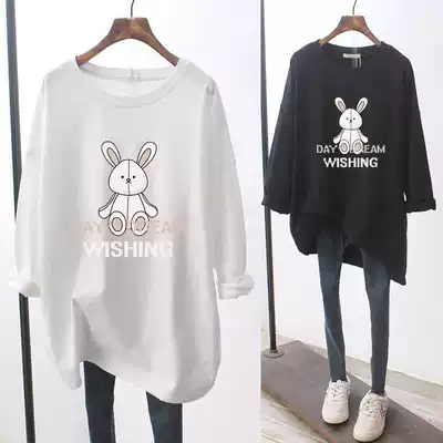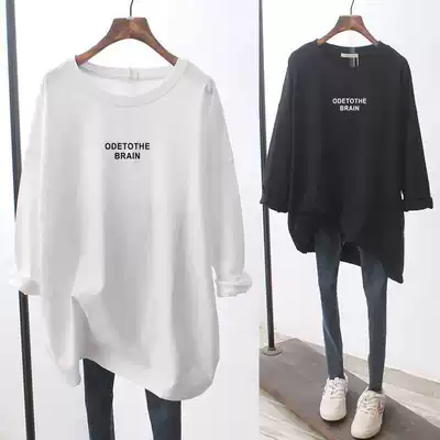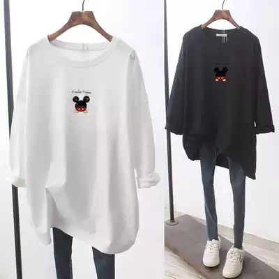2021 new popular autumn cotton long sleeve T-shirt women Loose medium and long version Korean top long version spring and autumn