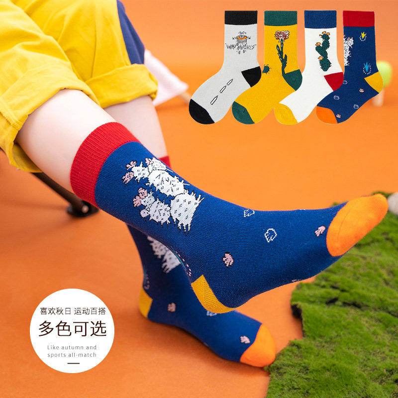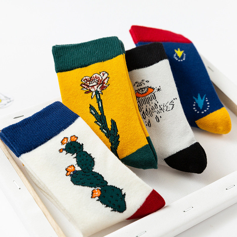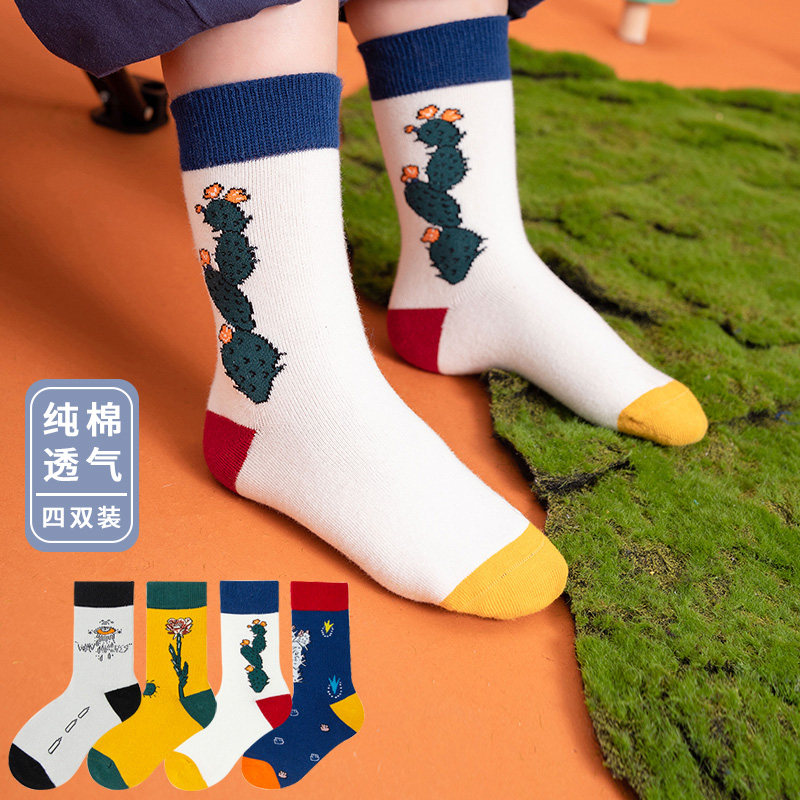 Boys tide socks autumn winter new pure cotton tube children Korean version hip-hop cactus boy girl students long socks