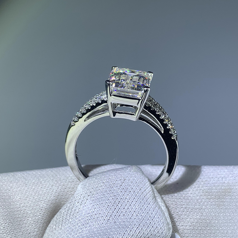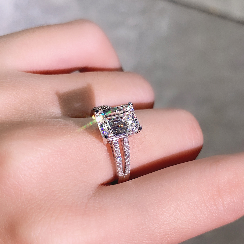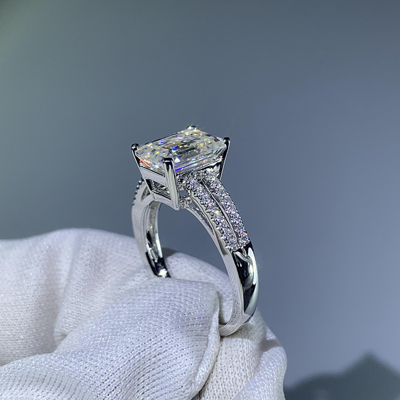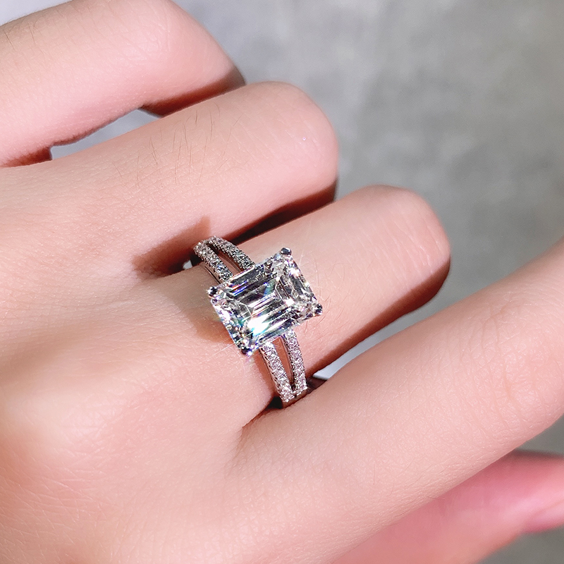 Grandmother - shaped micro - inlaid rectangular 18K platinum Mosang diamond ring with a 345 - carat ring woman