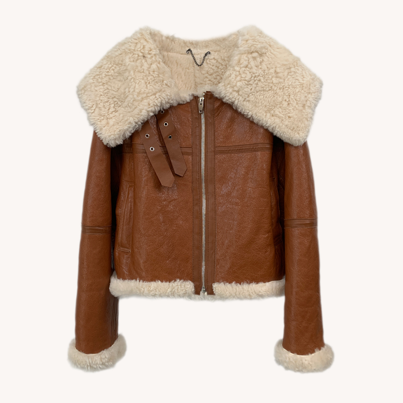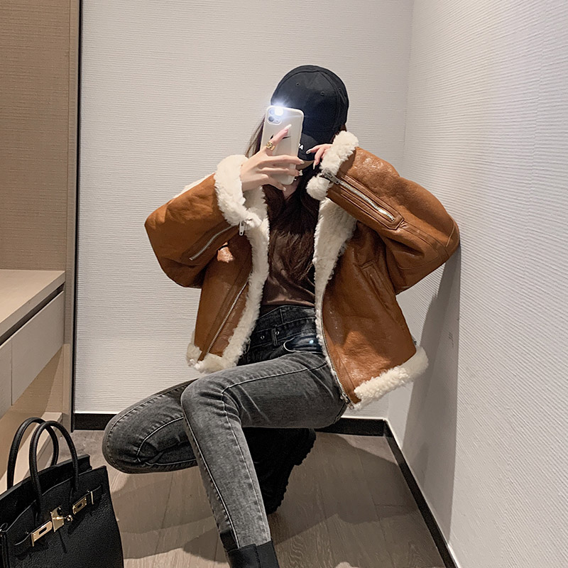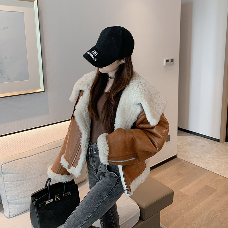 2022 new winter leather and fur jacket women's fur short style young motorcycle lamb hair Haining