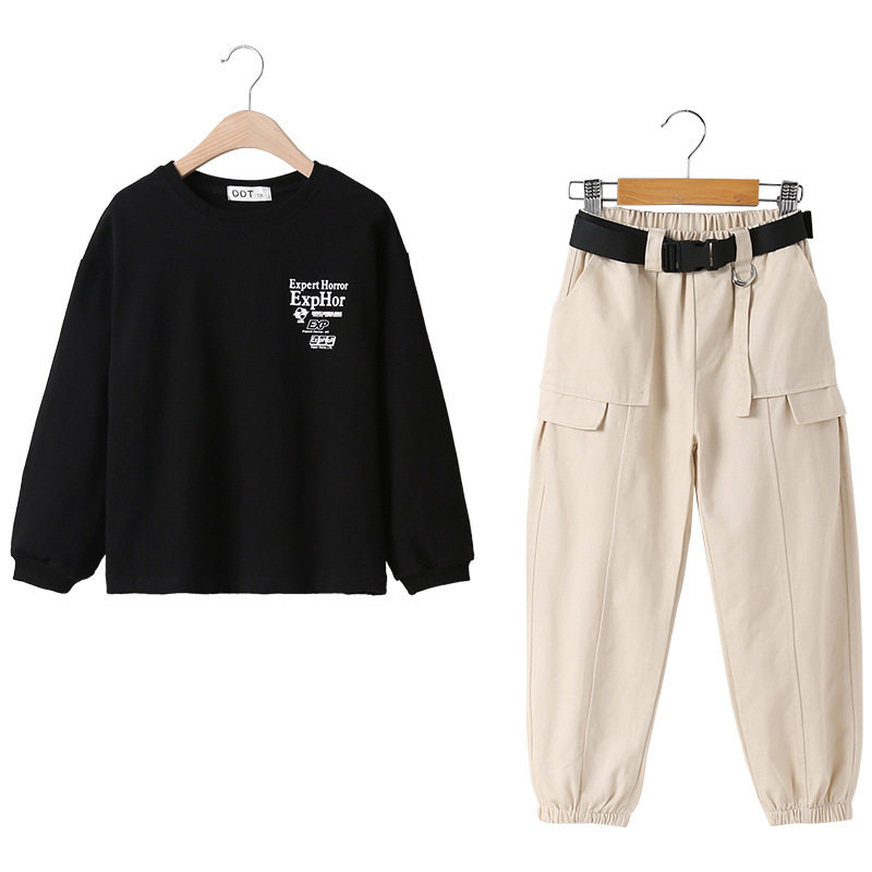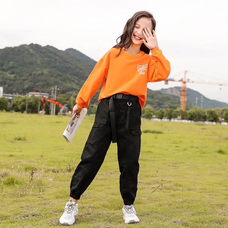 Girls spring suits 2022 new western style net red 12-year-old big boy overalls sweater sports fried street two pieces