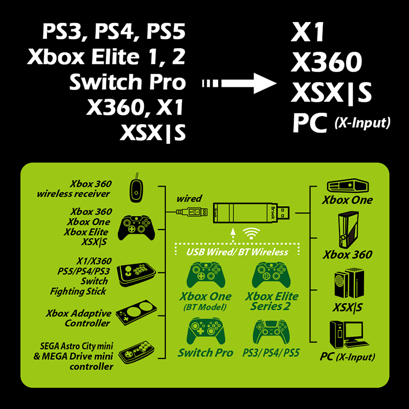 Brook Adapter Wingman-XB ps3 ps4 ps5 Xbox Elite 2 to XB360 ONE Console
