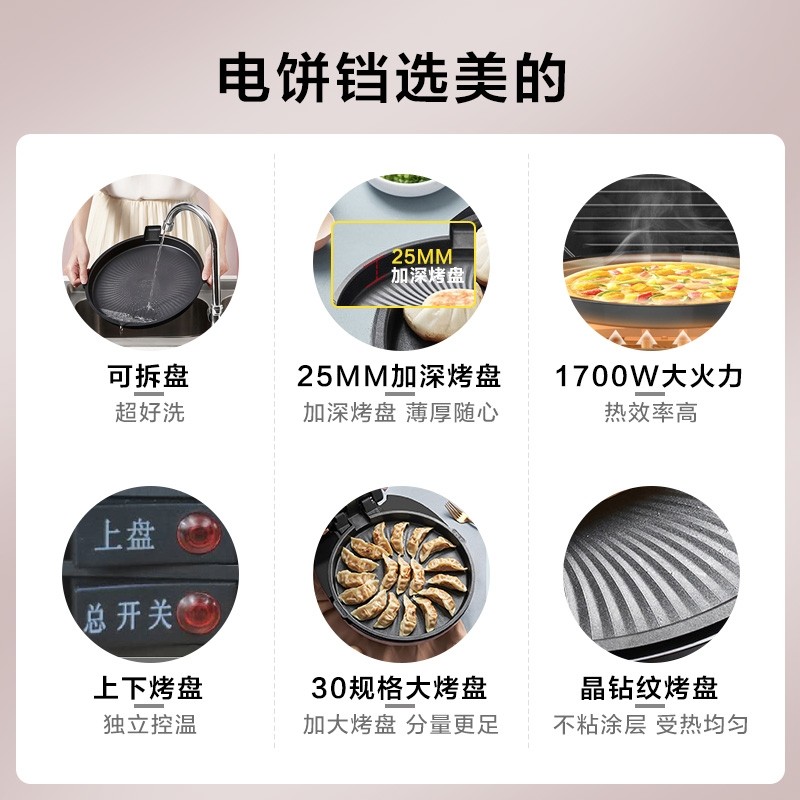 Midea electric cake pan electric cake stall household double-sided heating pancake pan frying pancake machine deepens and enlarges removable, washable and disassembled