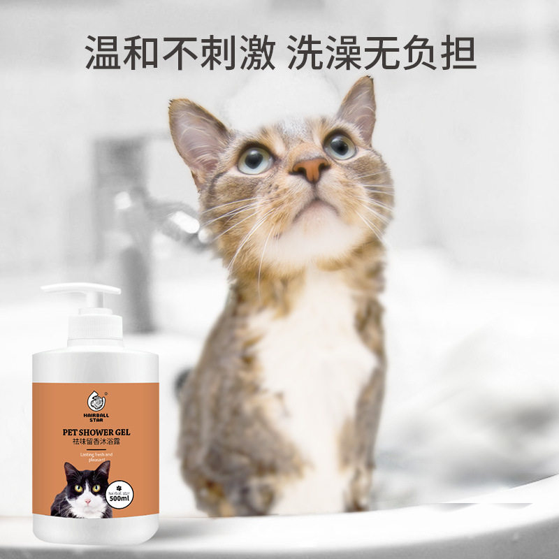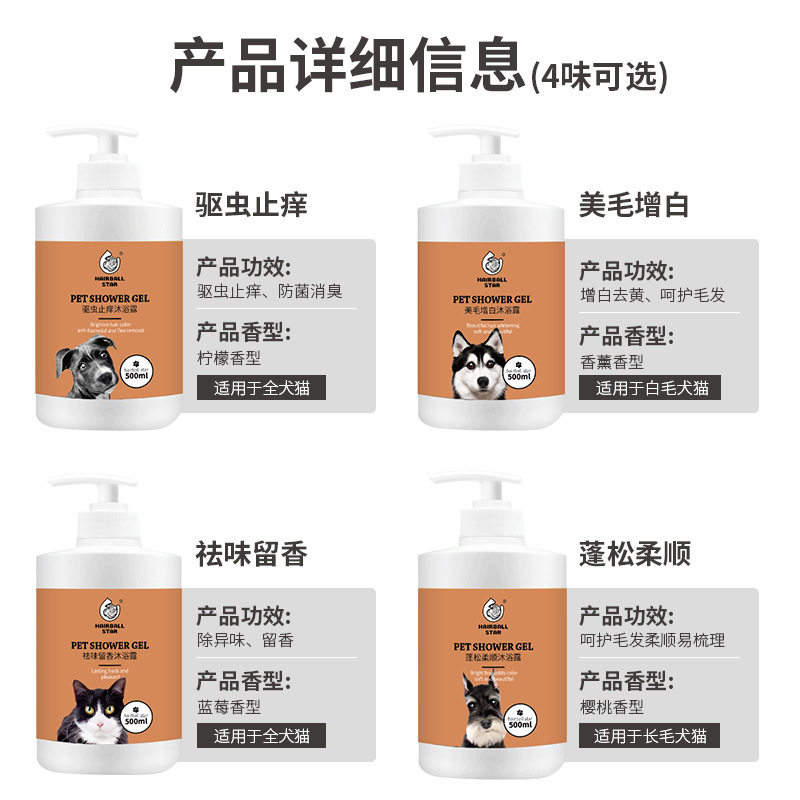 Factory direct selling hairball star pet shower gel dog bath shampoo bath liquid fragrance cleaning cat shower gel