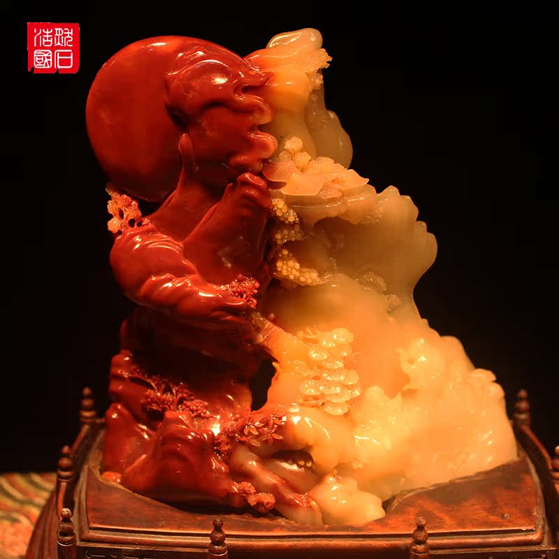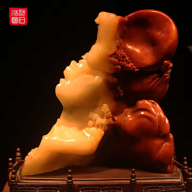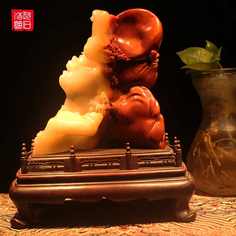 (Already Tied please appreciate) Shoushan Playful Red White Hibiscus Mountain Water Subject Home Office Decorations Hem