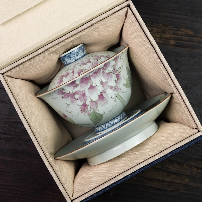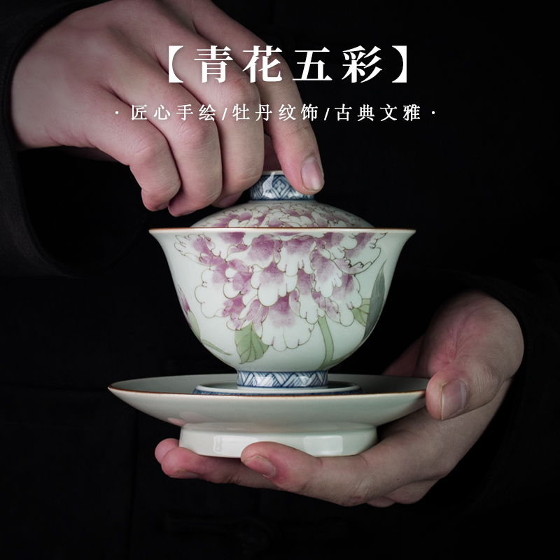 St. Mountain Antiquity Painting Blossom Peony Cover Cup Chinese Ceramic Renaissance Tea Top Three to Build a Bowl of Tea Cover