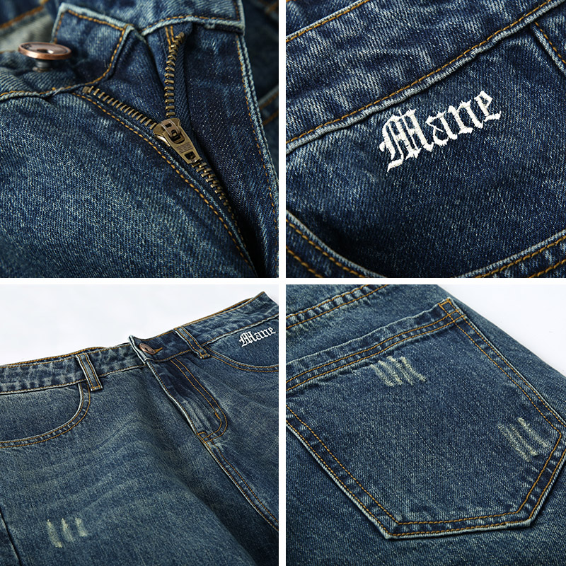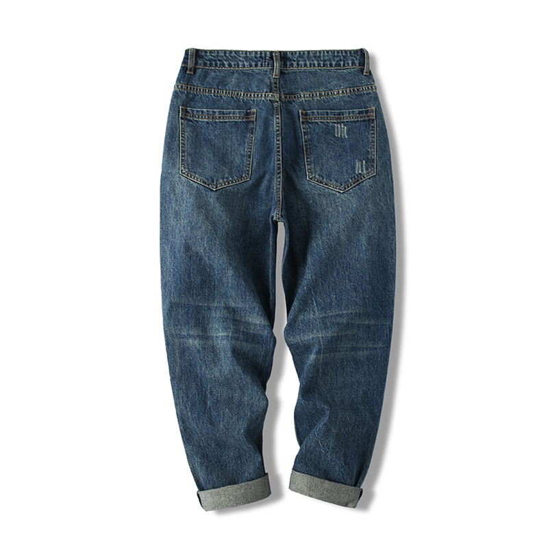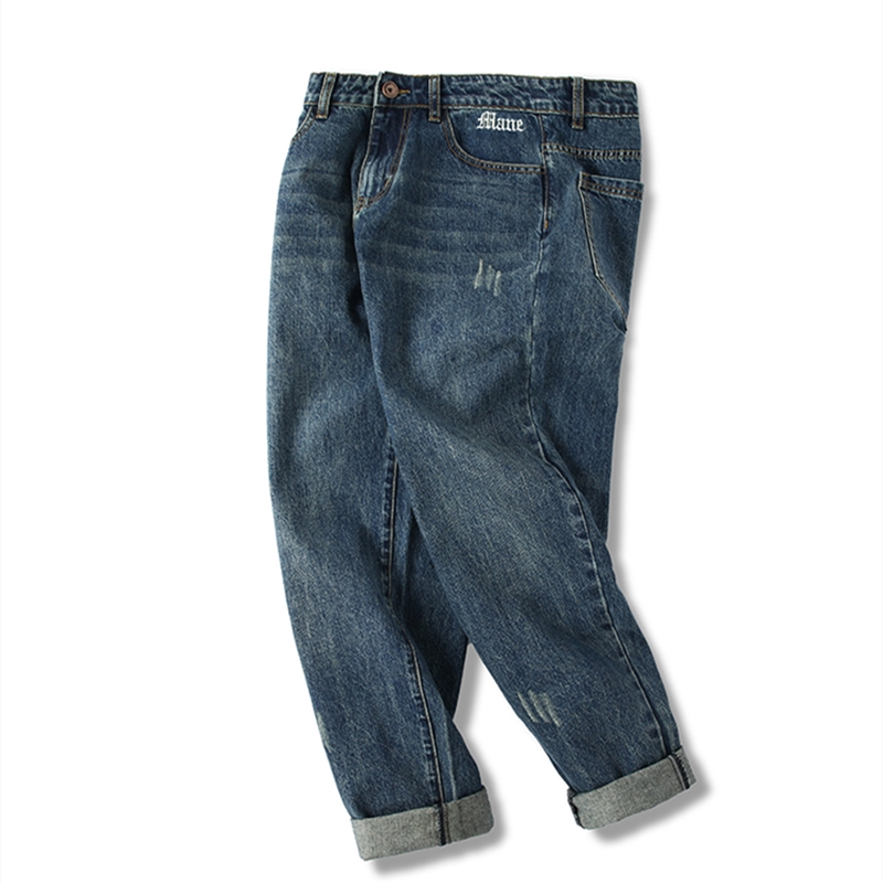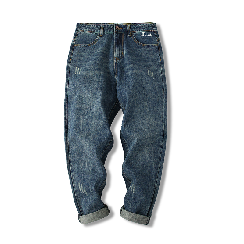 Yu Wenle with the same washed jeans men's autumn and winter loose straight tube trend versatile trousers nine-point casual pants