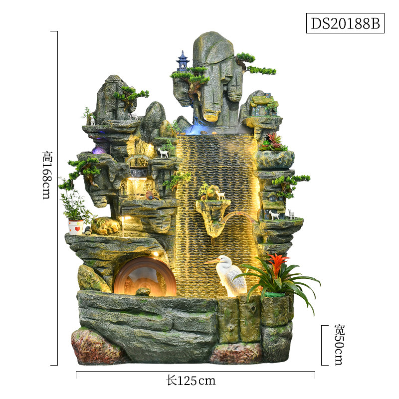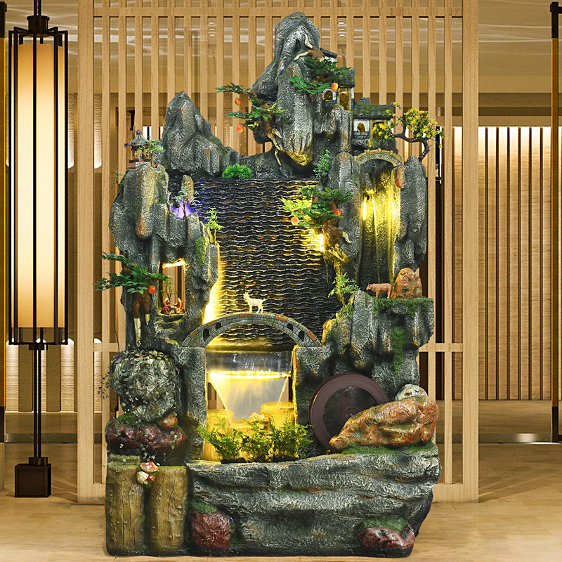 Fake mountain water fountain fengshui wheel fish tank viewing room Xuanqan balcony garden courtyard