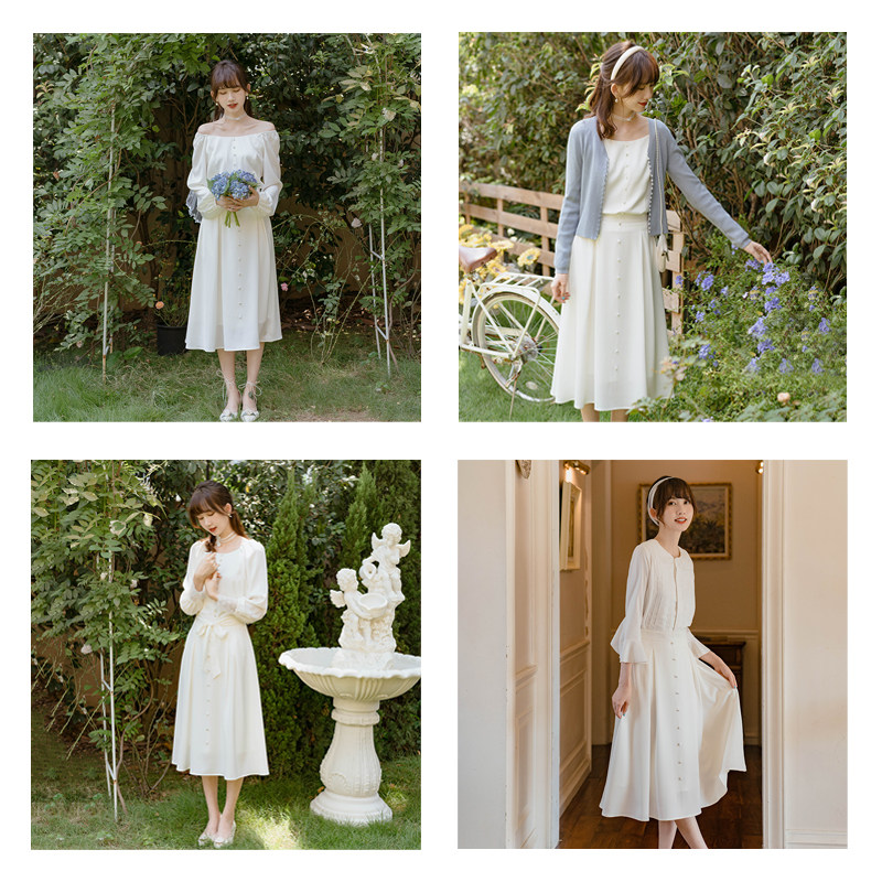 22 new early summer temperament niche high waist thin French satin drape fairy umbrella skirt skirt a-line skirt