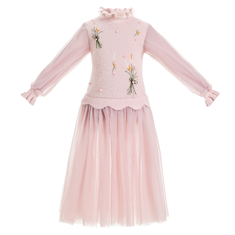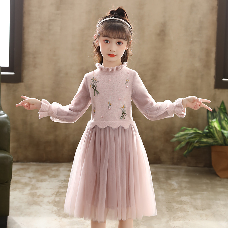 Girls dress autumn and winter 2022 winter new style plus velvet princess skirt winter skirt children's clothing girls sweater skirt winter