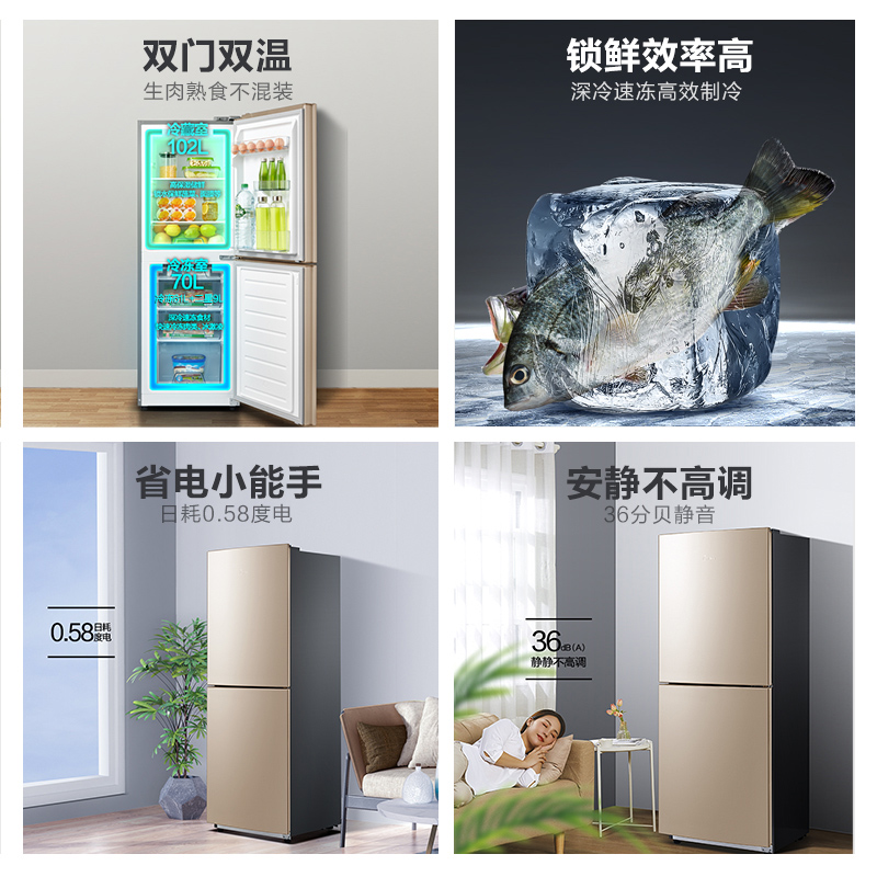 Midea 172L refrigerator Household small two-door freezer Rental mini power saving two-door two-door small refrigerator