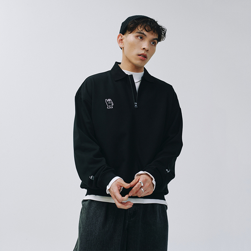 Crissrex Store SAMESAME Mascot Casual Polo Shirt Long Sleeves Loose Couples Base Top