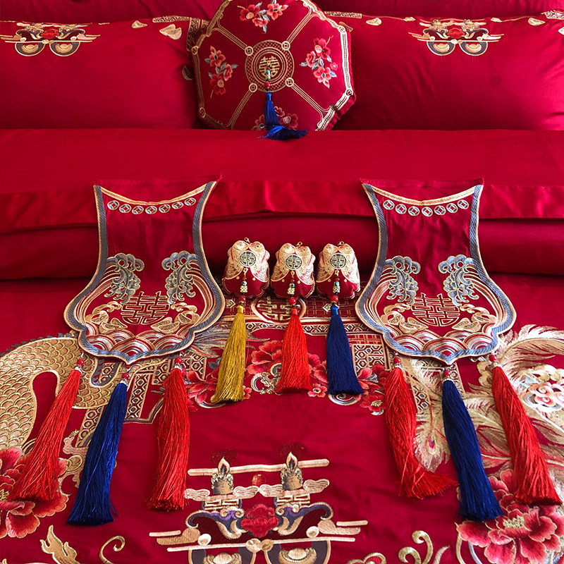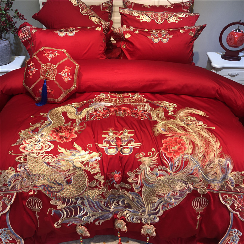 New wedding bedtime group Longfeng was a four-piece wedding room all cotton pure cotton Chinese bedding supplies