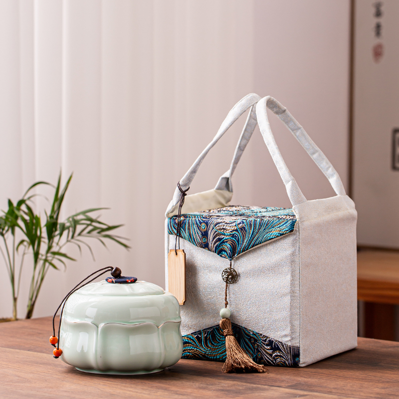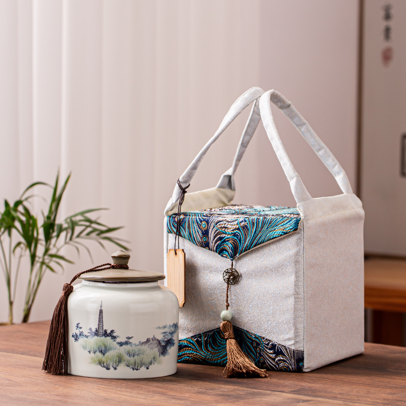 Grey Xiang Yunbu Package Single jar-Classical Green Hills Peacock Blue Cloth Bag Single Jar-Classical Green Hills Peacock Blue Cloth Bag Single Jar-Green Porcelain Lotus Sketch Golden Peacock Blue Cloth Bag Single Jar-TianQingjiang South Water Township Peacock Blue Cloth Bag Single Jar
