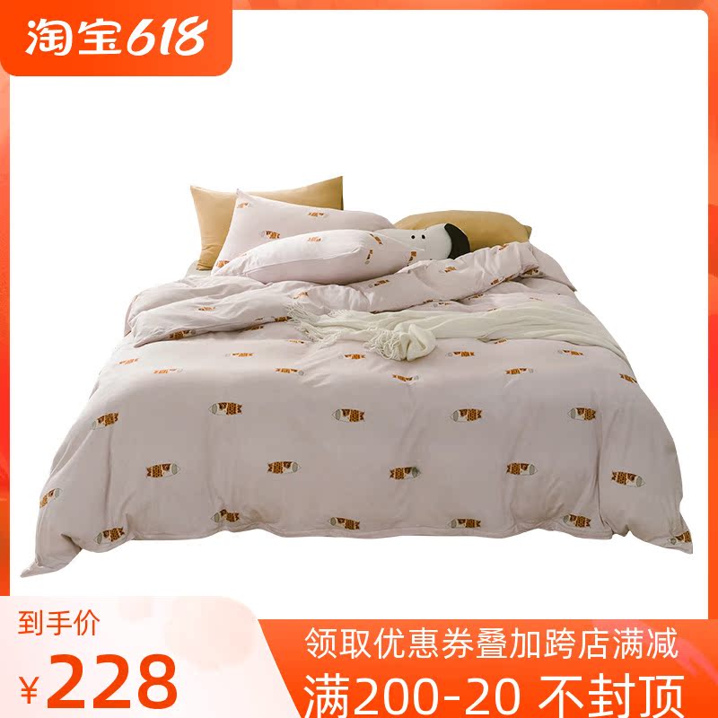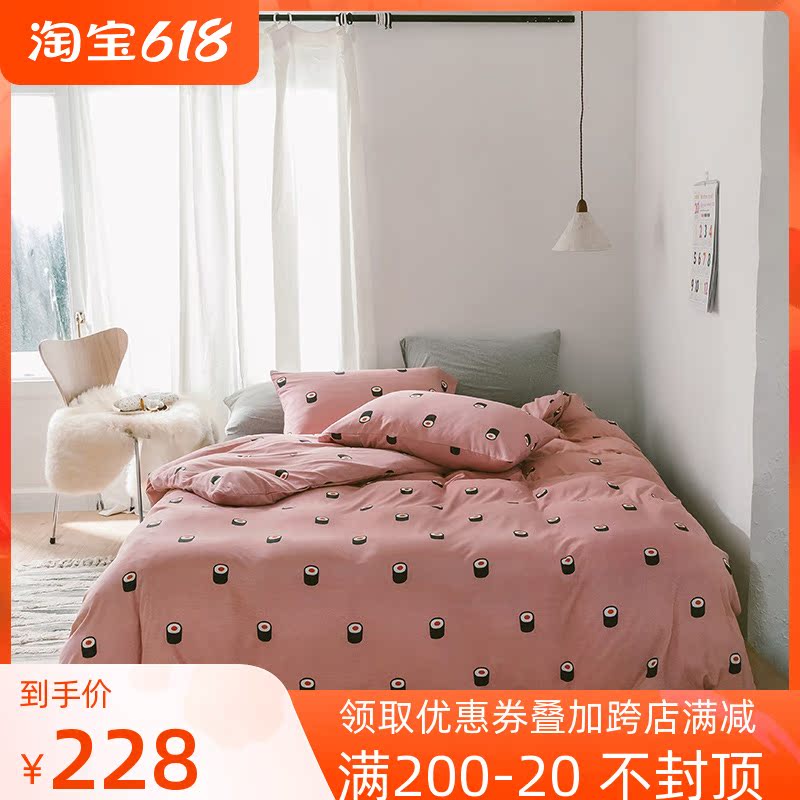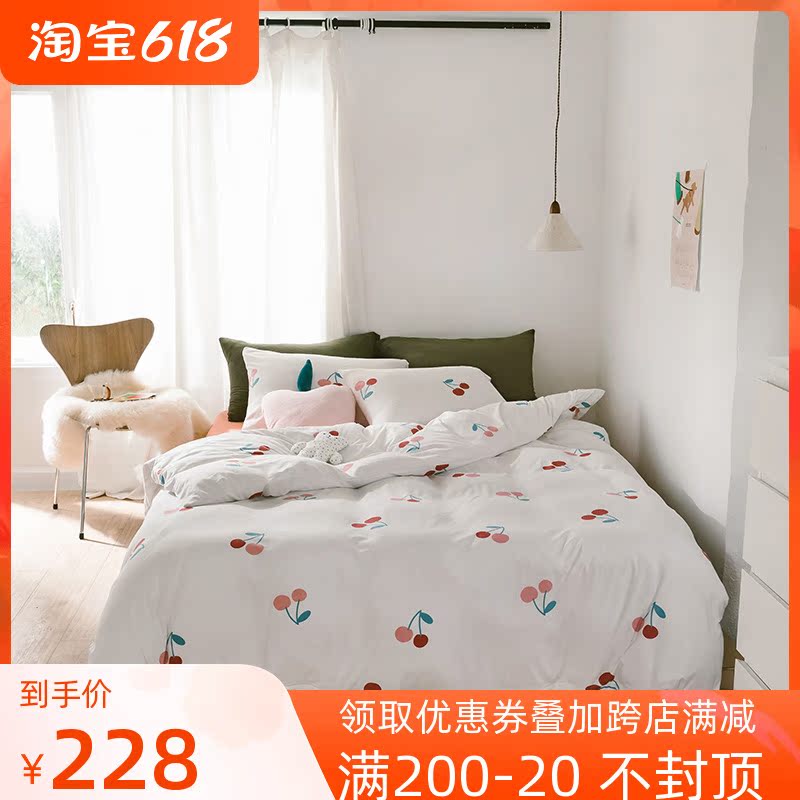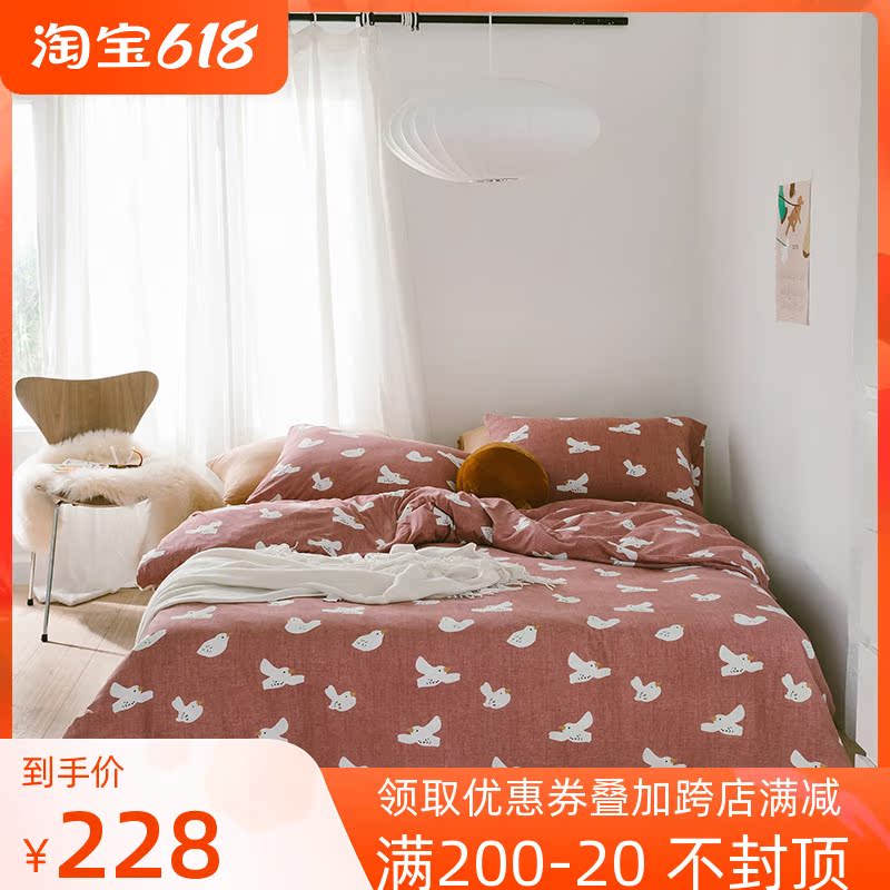 Geranium cotton four pieces of printed nude sleeping knit cotton quilted with bunk bed linen bed linen full cotton bed with supplies 1 8m