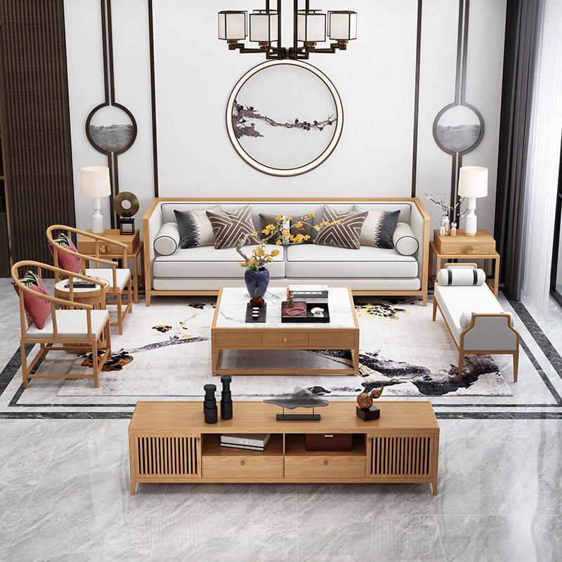 Modern simplicity New Chinese solid wood cloth Sofa Combined Living-room Sales of Prototype Board Room Furniture Hotel Folk Juku-Taobao