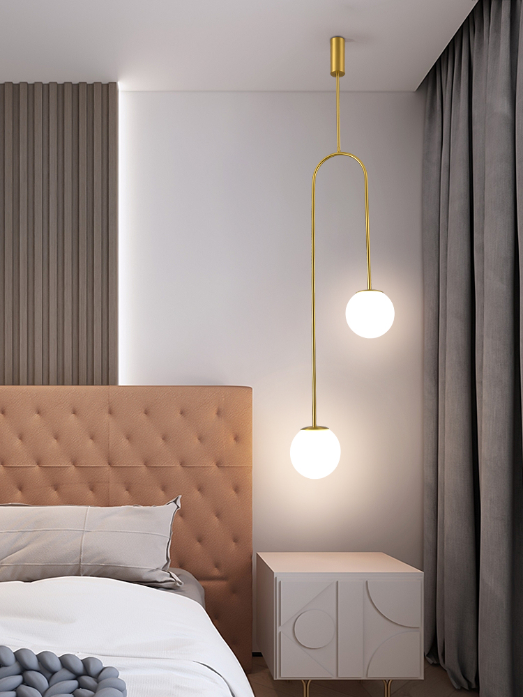 Nordic bedroom bed head small chandelier single-head glass simple modern creative light luxury dining room long-line bar lamp