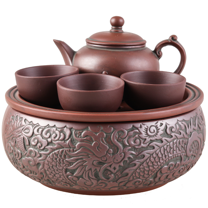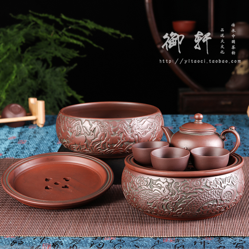 Green bronze color Jun Horse tea tray suit Youth bronze color Longfeng tea tray suit Youth bronze color Jun Ma small tea tray Qing bronze color Longphoenix small tea tray green bronze color wave pot (send 3 cups)