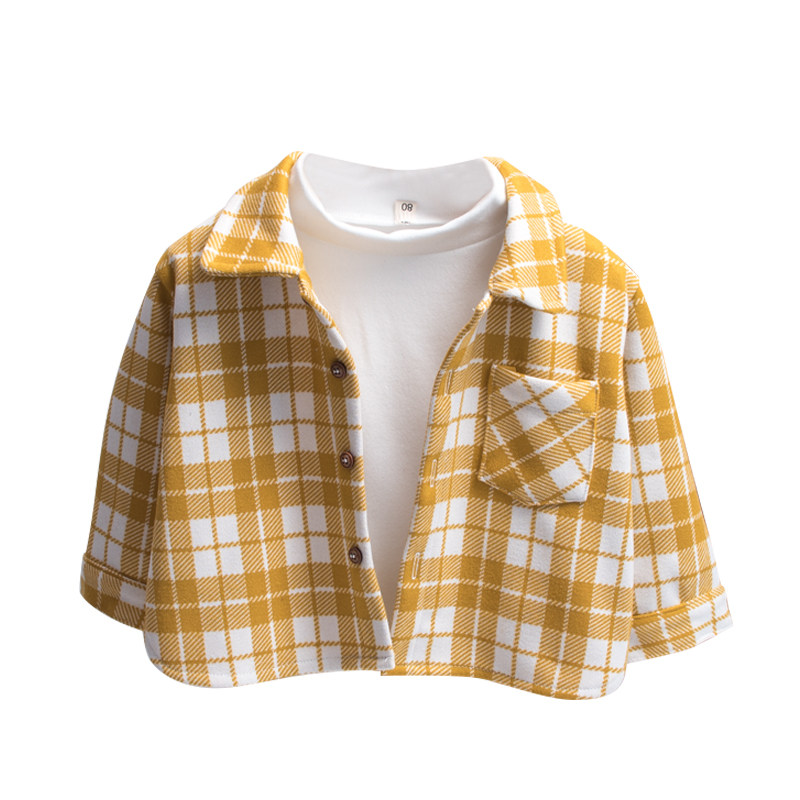 Boy's spring clothing 2022 new plaid children's shirt jacket thickened, suede Korean version baby lining the spring and autumn foreign pie