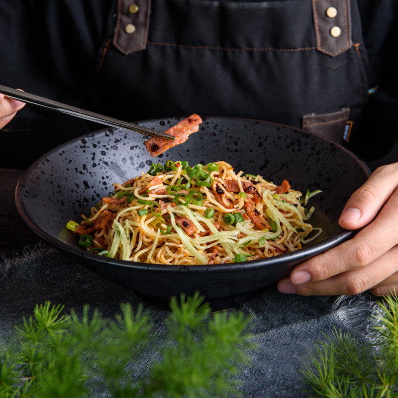 Ceramic large noodle bowl bucket hat horn noodle house special net red Japanese household Nordic beef retro ramen noodles bowl
