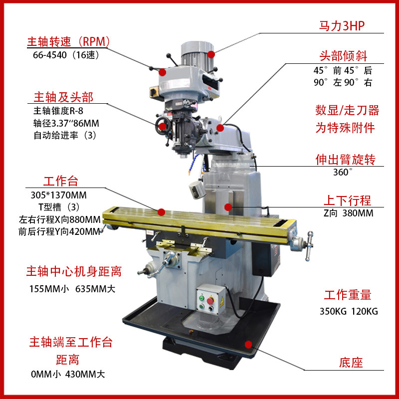 High-rigidity precision Taiwan M5 turret milling machine high-precision universal drilling and milling machine CNC vertical and horizontal dual-purpose direct sales