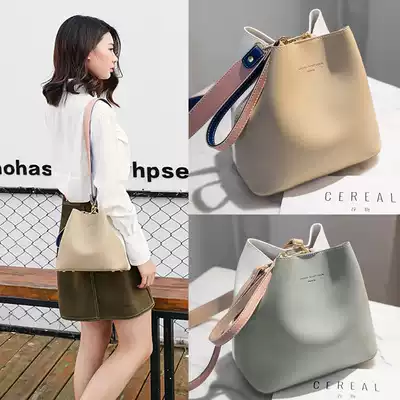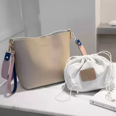 Hong Kong leather small mk bucket bag women 2021 new niche shoulder shoulder bag ins students Wild