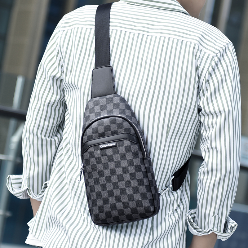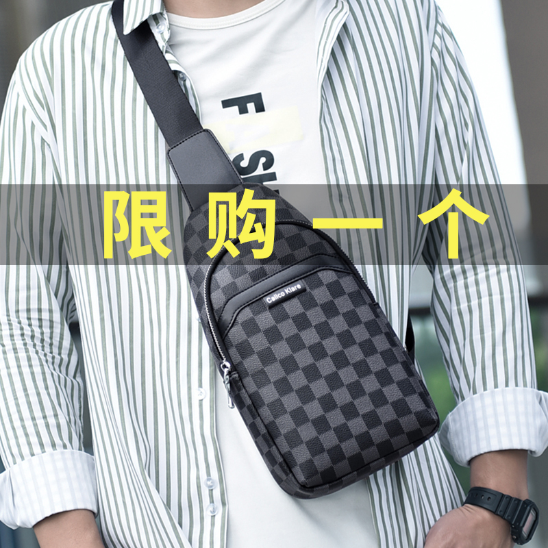Leather chest bag men's young men 2020 new fashion men's plaid multi-functional leisure one-shoulder messenger bag backpack