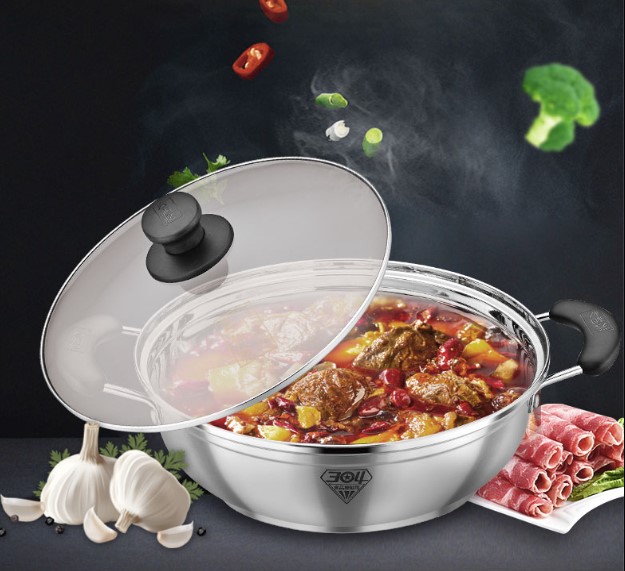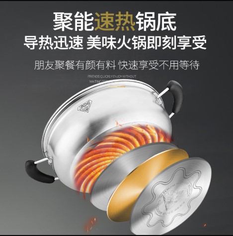 Sea Hair Hot Pot Thickened 304 stainless steel induction cookpot Hot Pot pan Electric hot pot Home Flat Soup Pot Commercial Special Pot