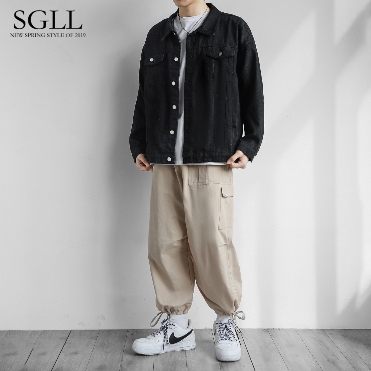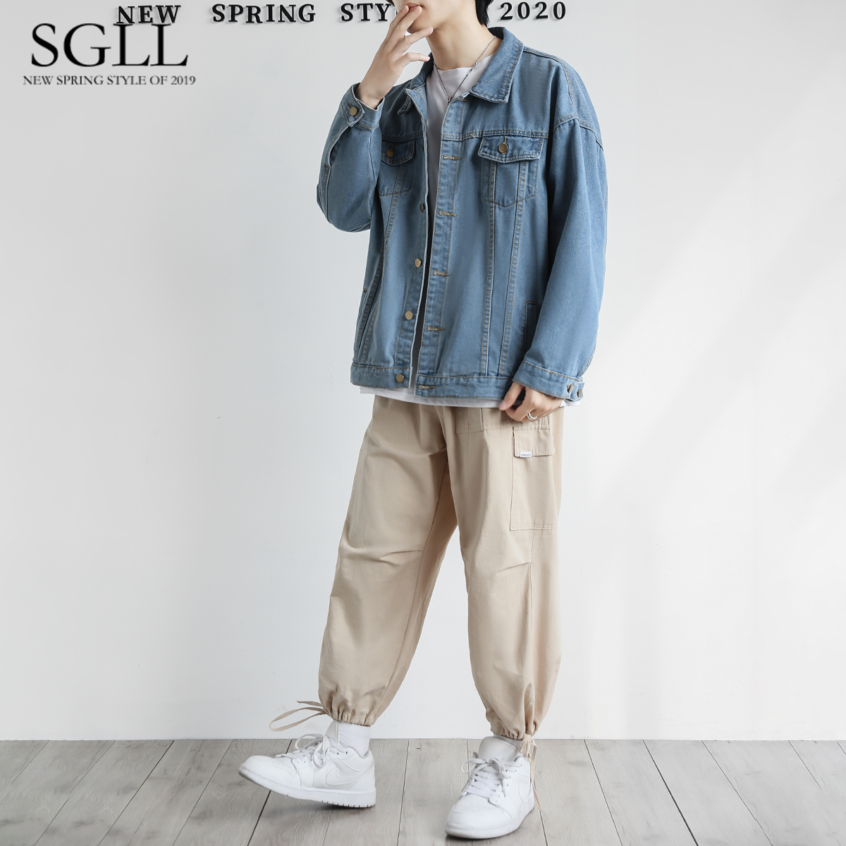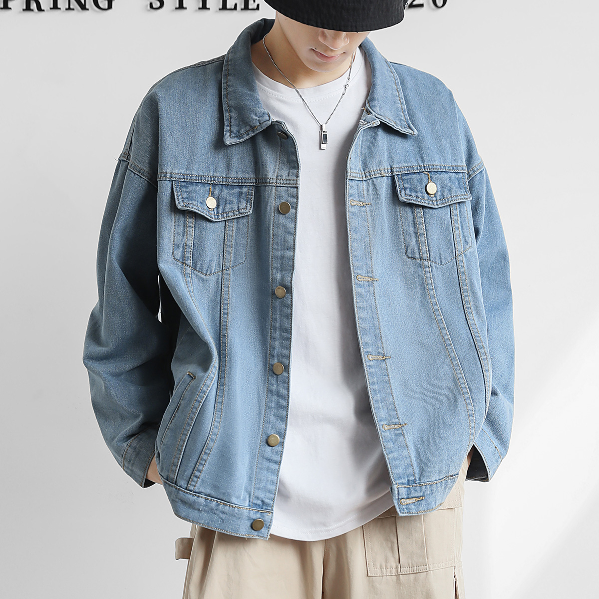 Denim jacket men's fall loose large size casual 100 hitch winter tooling coach jacket Korean version trendy men's clothing