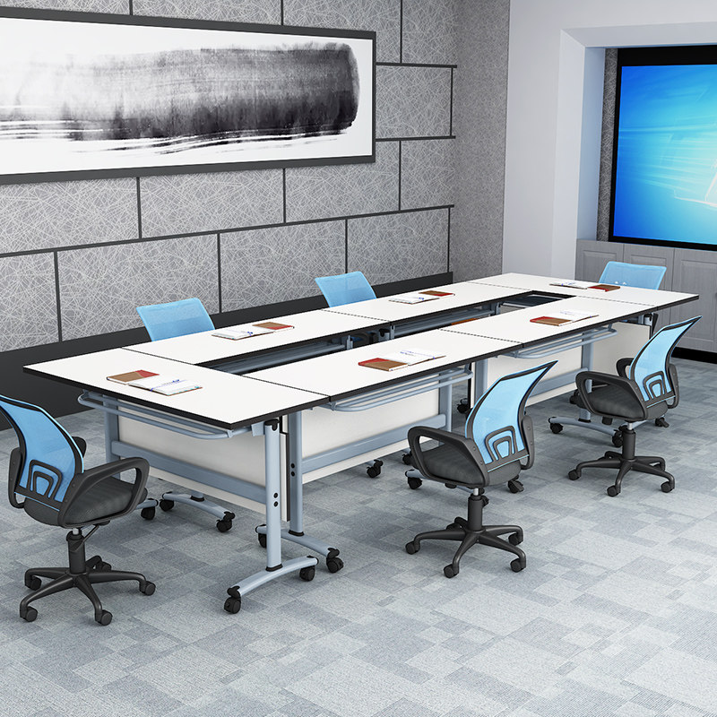 Folding training table and chair training table conference table combination double long table flap splicing table mobile belt wheel