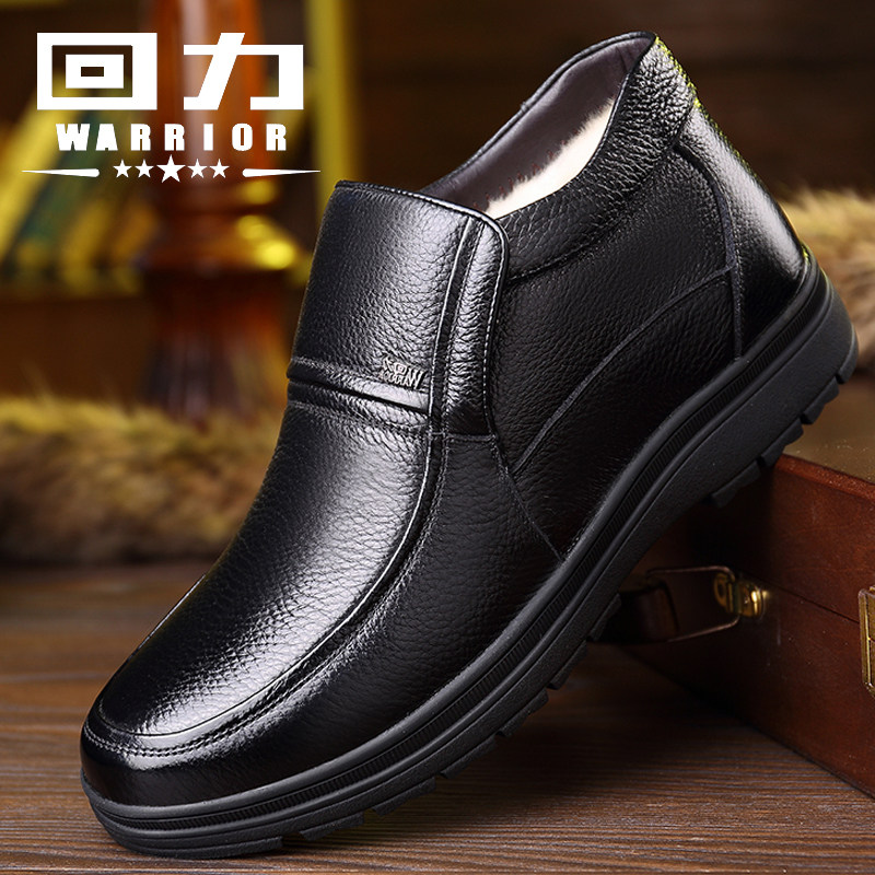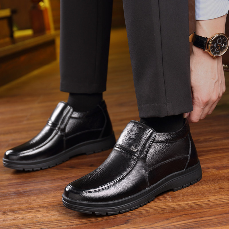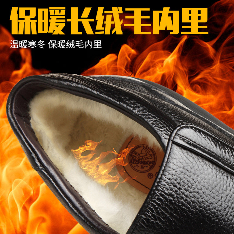 Back Force Men Cotton Shoes Men Genuine Leather Winter Plus Suede Warm Middle Aged Cotton Leather Shoes Men Casual Non-slip Dad Shoes