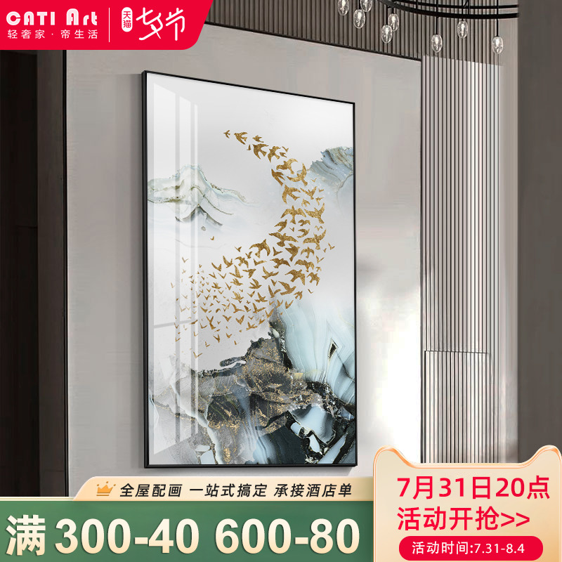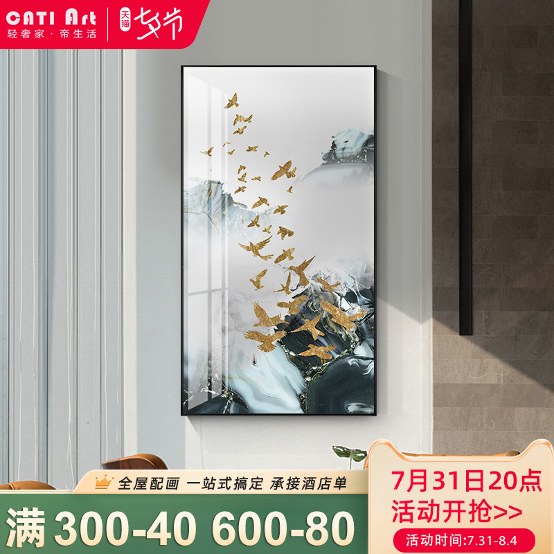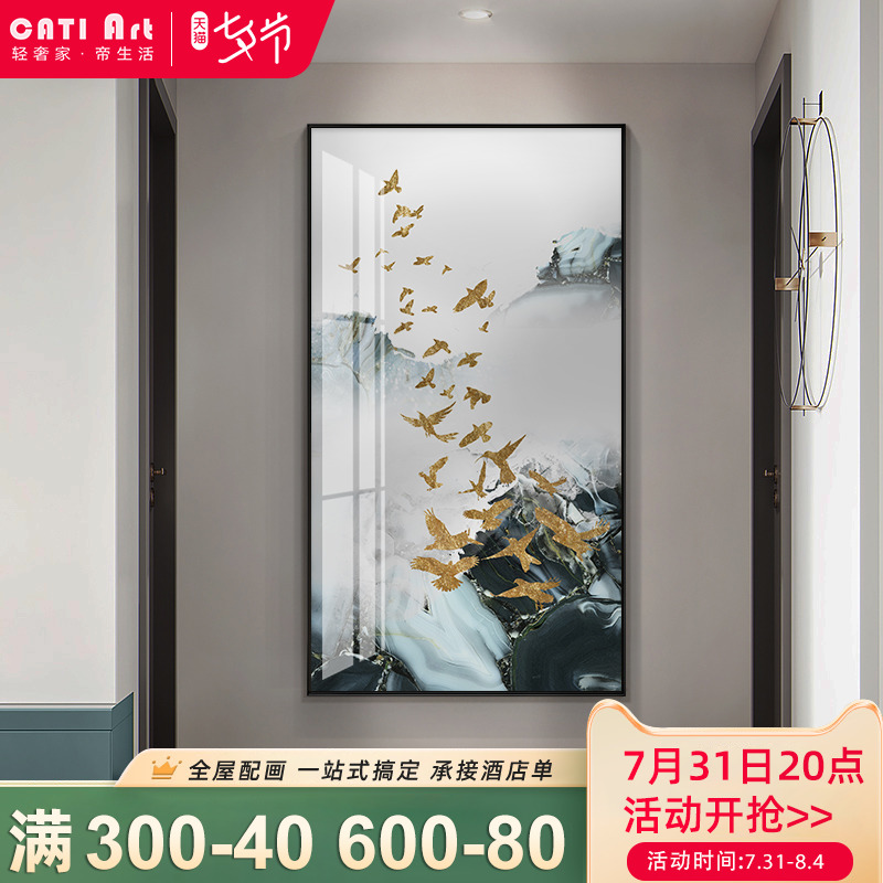 Modern Chinese-style entrance into the house Decorative Painting Veranda aisle Vertical version of landscape Flying Bird hanging painting Living room Background wall frescoes