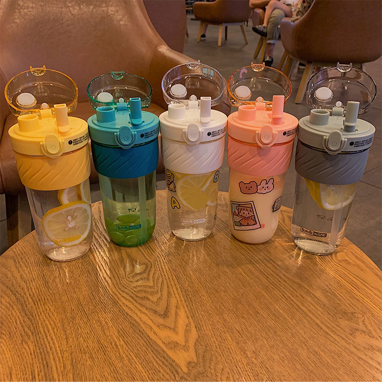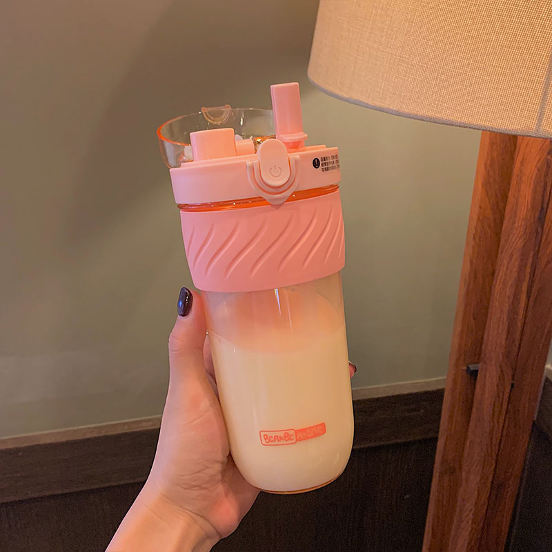 Straw cup portable anti-fall anti-hot double drinking cup sports water cup female belt suction pipe network red cute cup Korea fresh
