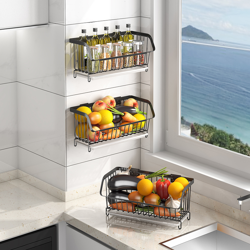 304 Stainless Steel Vegetable Basket Kitchen Shelve Free of perforated wall-hanging seasonings Fruit Vegetable Containing Basket rack